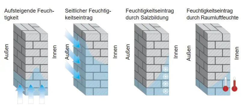 Mögliche Ursachen von Kapillarwasserentstehung im Mauerwerk