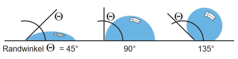 Wir erhöhen die Oberflächenspannung in den Kapillaren und damit den Randwinkel Θ (Theta) auf der Kapillaroberfläche durch das Einbringen von hydrophoben (wasserabweisenden) Schichtstärken im Nanometerbereich. So werden die feinsten Kapillaren im Mauerwerk durch das verwendete wasserunlösliche Injektat dauerhaft hydrophob.