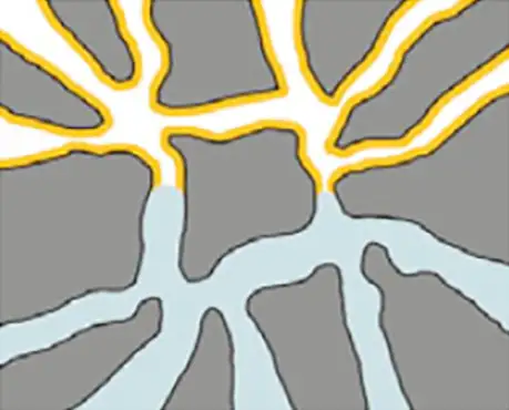 Dieser Wirkmechanismus zielt darauf ab. durch die Injektion die Poren zu füllen und dadurch den kapillaren Feuchtetransport zu unterbinden. Die 100-prozentige Verstopfung der Poren ist in der Praxis nur schwer zu erreichen. Einige Poren können ggf. nicht vollständig verstopft, sondern nur verengt werden.